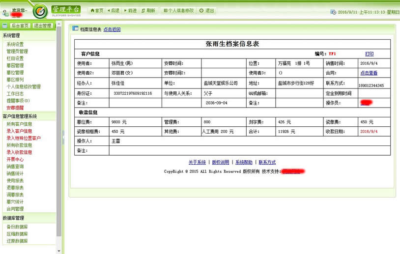 6、安葬合同的打印、補(bǔ)辦、更換。